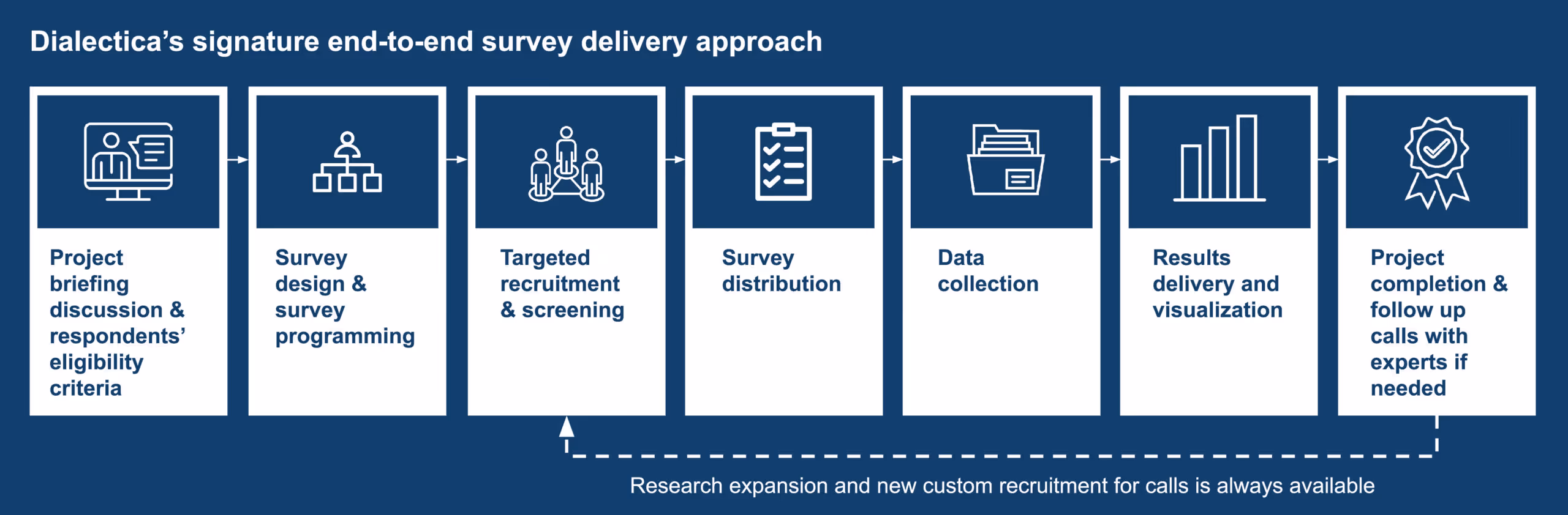 - And ensures ongoing customized research and constant realignment throughout the survey project lifecycle, resulting in a survey population that is truly representative of the client’s market study and tailored to their insight needs.