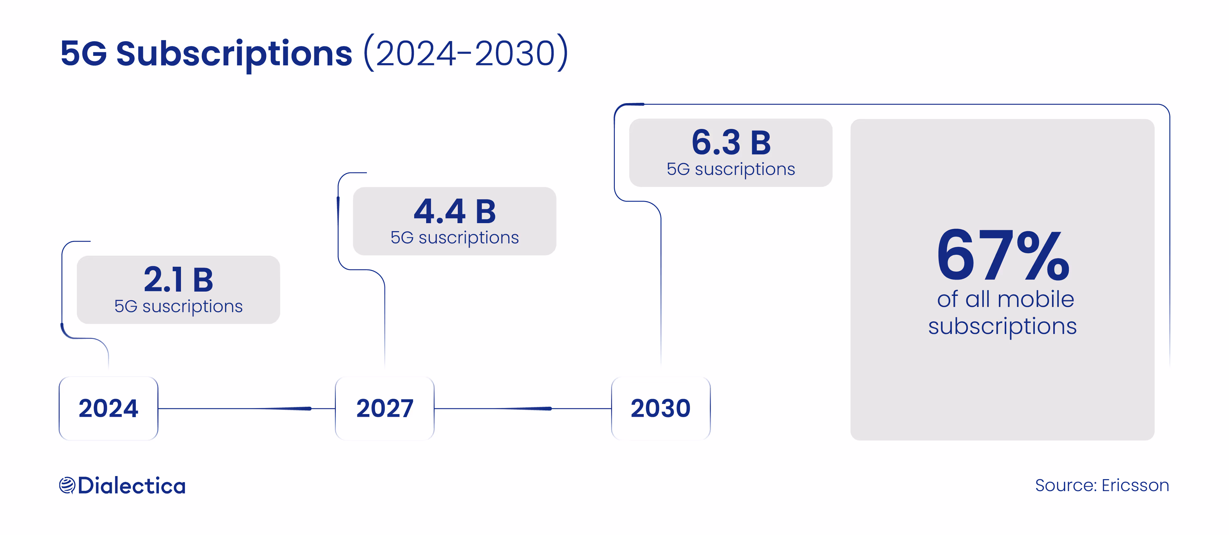 Additionally, 5G subscriptions are expected to exceed 4.4 billion users by 2027, further driving demand for AI-powered network management. As of Q3 2024, global 5G subscriptions reached 2.1 billion, with projections indicating that they will overtake 4G by 2027, reaching 6.3 billion subscriptions by 2030, accounting for 67% of all mobile subscriptions, according to Ericsson.