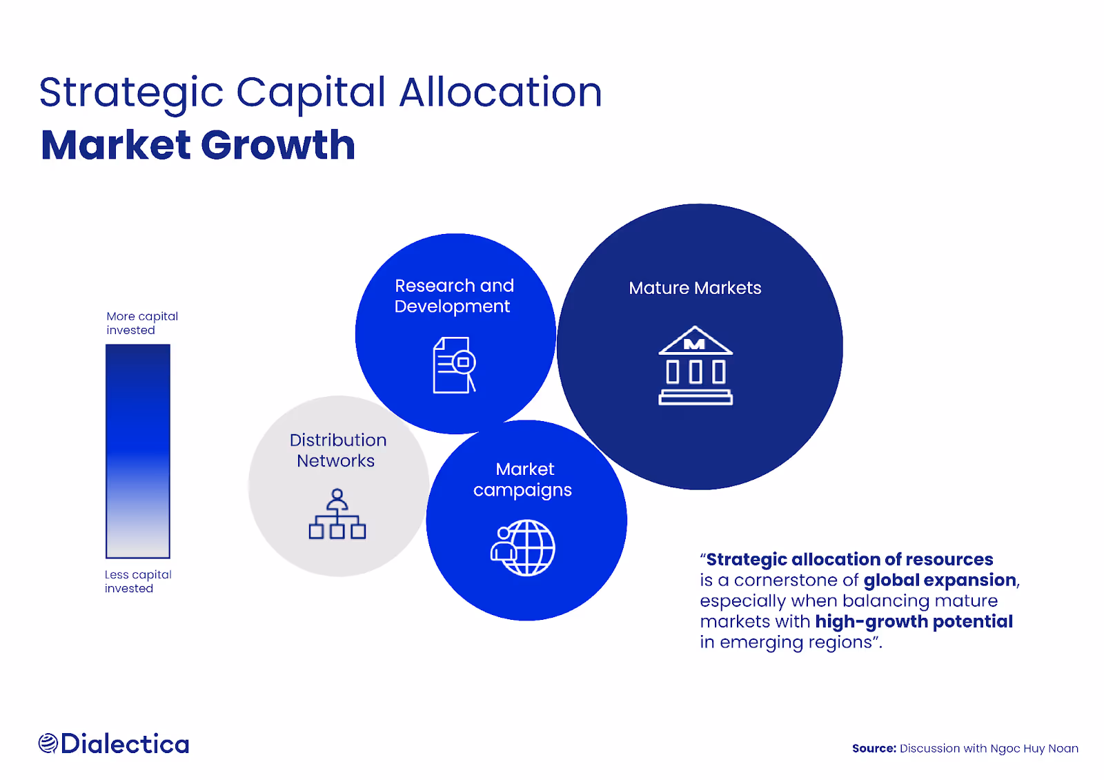 Strategic allocation of resources is a cornerstone of global expansion, especially when balancing mature markets with high-growth potential in emerging regions. Huy elaborates on the dual objectives of profit maximization and reinvestment for long-term growth. “Mature markets often serve as cash cows, while emerging markets demand consistent investment to establish a foothold”, he explains.