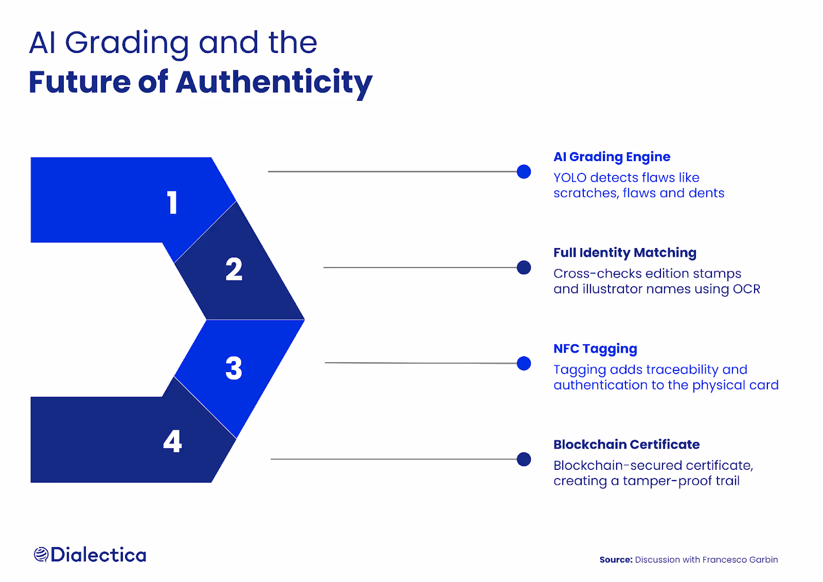 Each graded card is sealed with a sensorized NFC label and paired with a blockchain-secured certificate, creating a tamper-proof trail from collector to marketplace. “We work with open-source communities and hardware experts to bring this to life”, Garbin notes. “It all converges to deliver truth in a market once ruled by perception”. This isn’t just a grading tool—it’s a reputation system. “We’re offering proof, not promises”, Garbin says. And it works: even his own Pikachu card, trashed for a week, came back with a grade of 1.