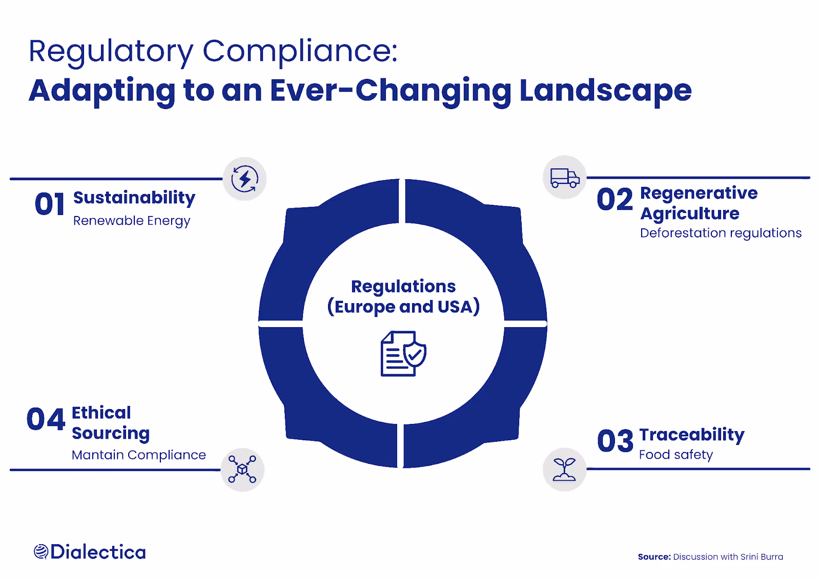 The regulatory environment is becoming increasingly complex, particularly in regions like Europe and North America. Burra emphasizes that staying ahead of these regulations is not just about avoiding penalties; it’s also about positioning the company as a leader in sustainability and ethical practices. “The pace of regulations, especially in Europe and North America, is accelerating”, he observes, pointing to new laws focused on issues such as sustainability, traceability, and regenerative agriculture.